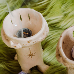Copalera hecha a mano de cerámica de alta temperatura esmaltada y detalles en ORO.