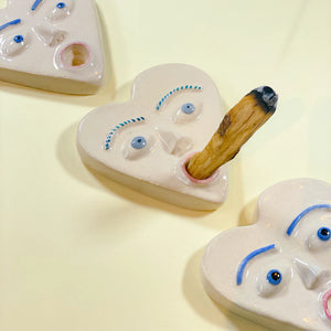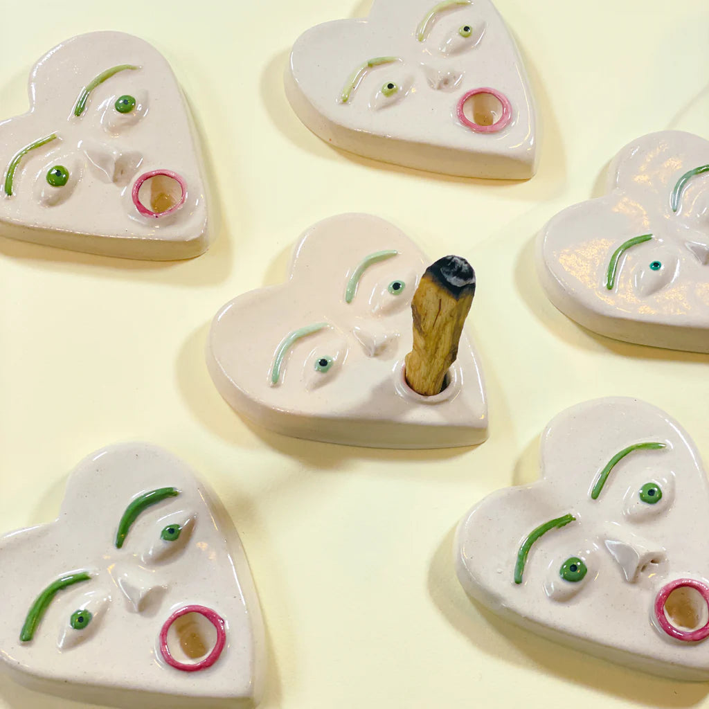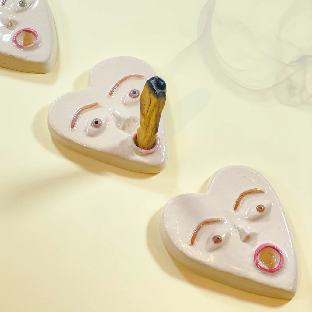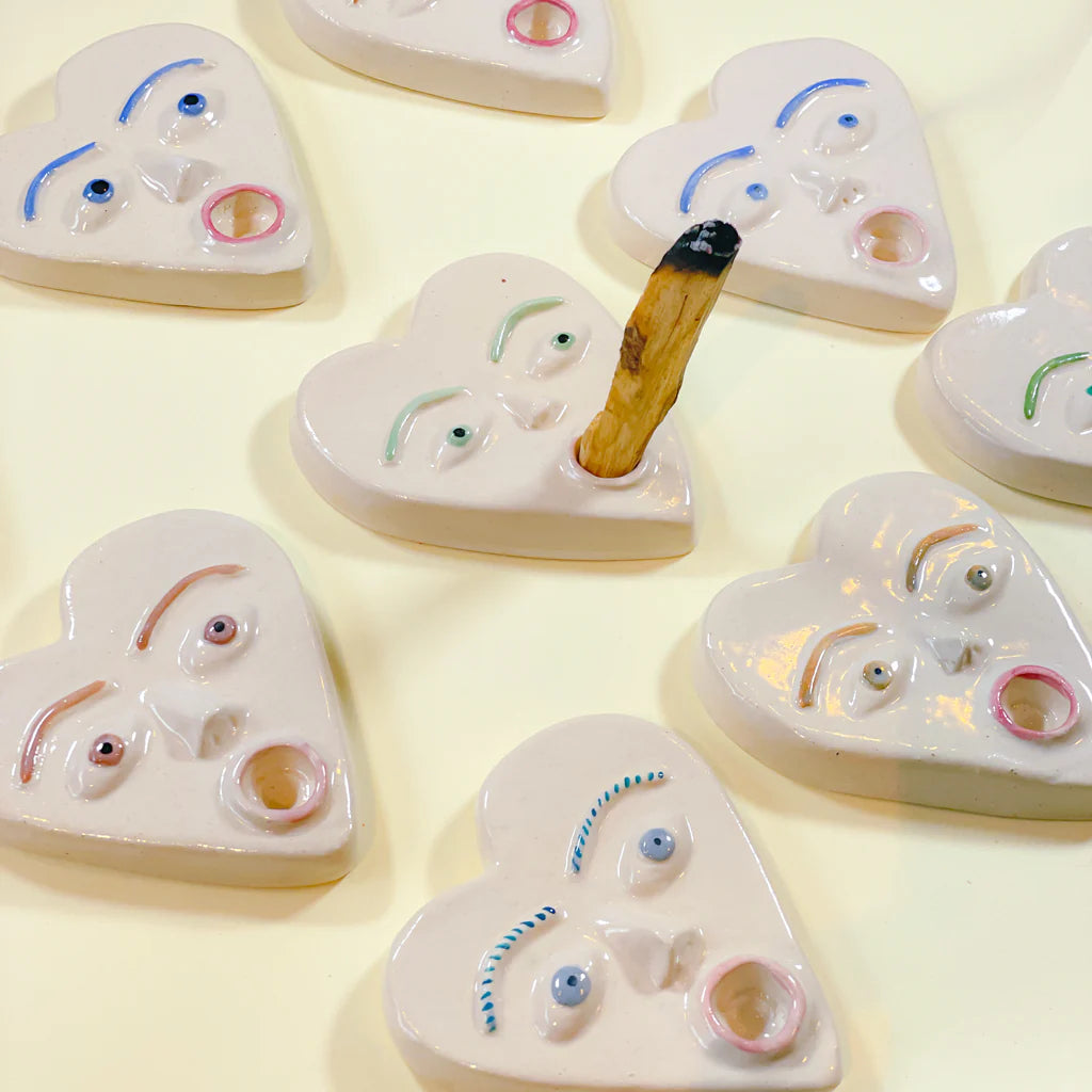 - Palosanto holder en forma de Corazón con esmaltes y engobes de colores variados.