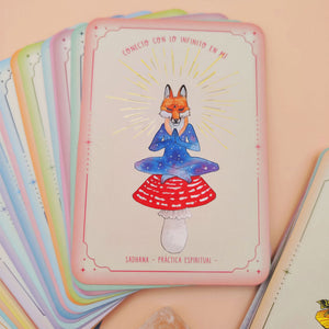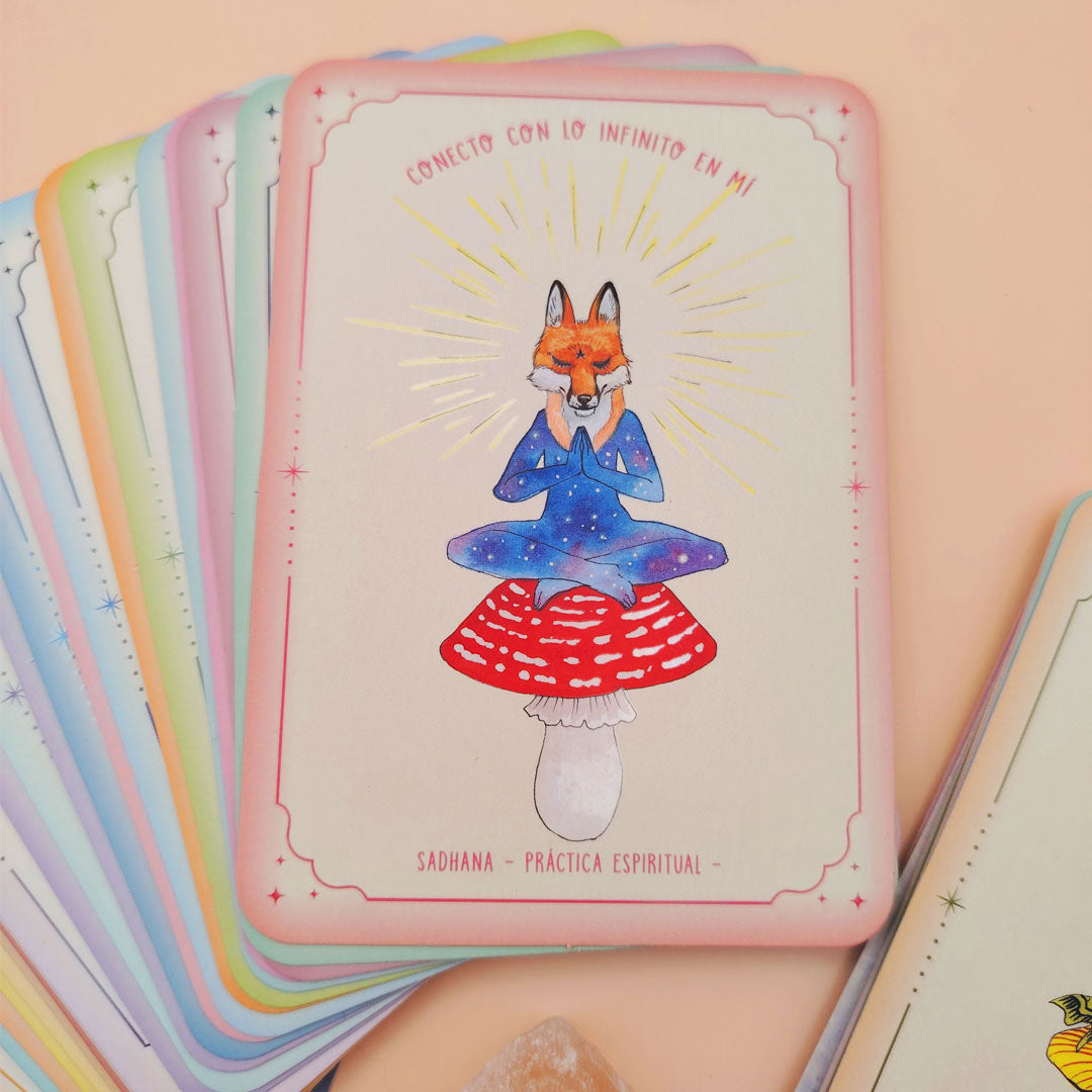 Este deck contiene 54 cartas hermosamente ilustradas con enseñanzas del universo yogui; Mantras, meditaciones, ejercicios y reflexiones que te dan luz, claridad y guía para crear armonía entre mente cuerpo y espíritu.