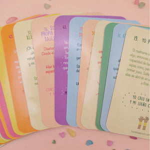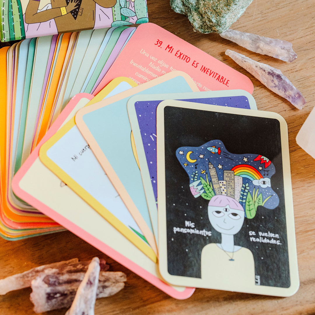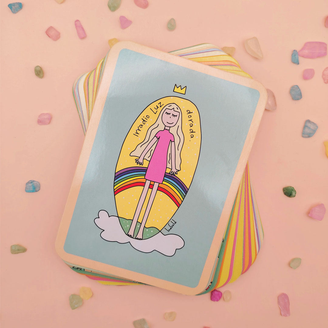 Set de 52 cartas mágicas llenas de amor y color, con mensajes del universo que te ayudarán a sintonizar tu frecuencia vibratoria y manifestar la realidad que deseas. El oráculo que todos necesitamos tener en nuestras vidas! Es realmente mágico como te cambia la perspectiva, te sube la vibra y saca lo mejor de ti.